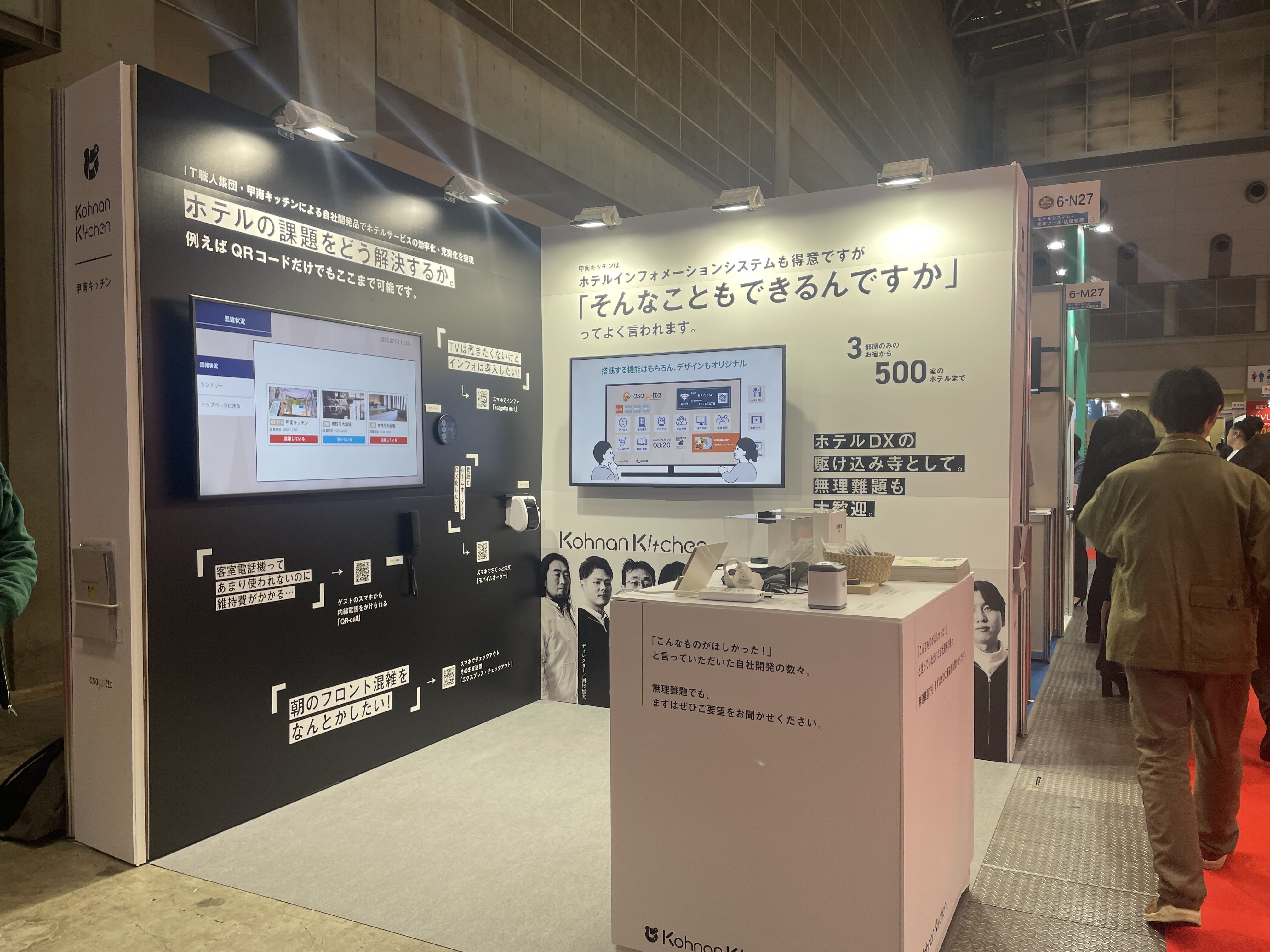 ホテルのDXを支援する事業で全国展開中の同社。ホテル向け展示会のプロデュースを通じて、開発から導入まですべて自社で可能という同社の技術力と機動力を打ち出すために、会場のパネルや展示台をはじめ、会社資料、タブロイドといった紙媒体を一貫して制作。同社の独自性と信頼性が伝わる空間を構築しました。結果として来場者数は前年度の約2倍に増え、こだわりの旅館から全国展開するホテルチェーンまで、全国各地の宿泊施設との商談が進みました。